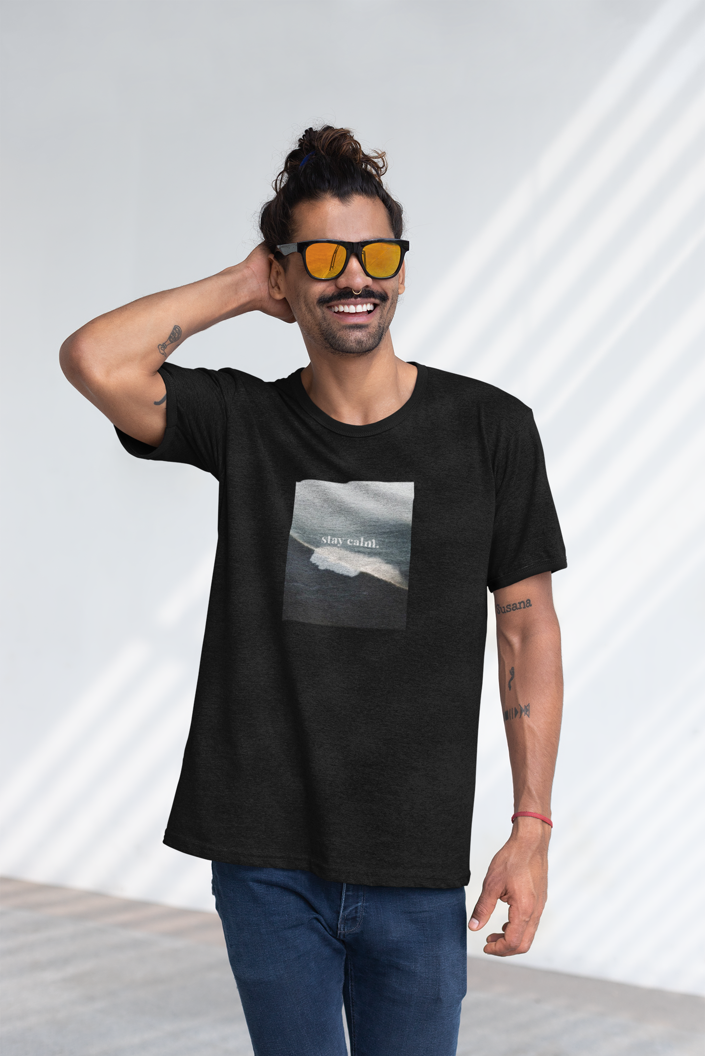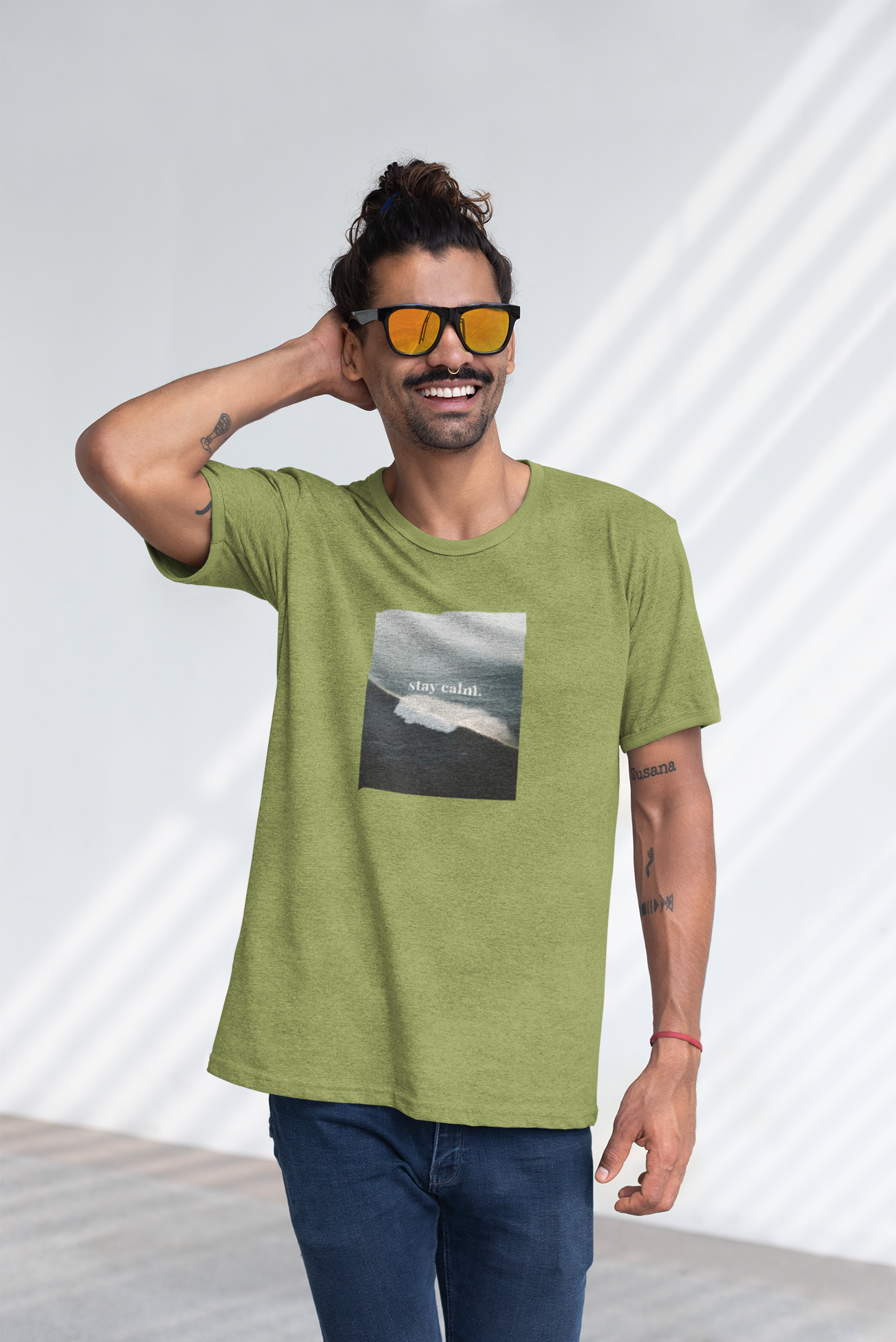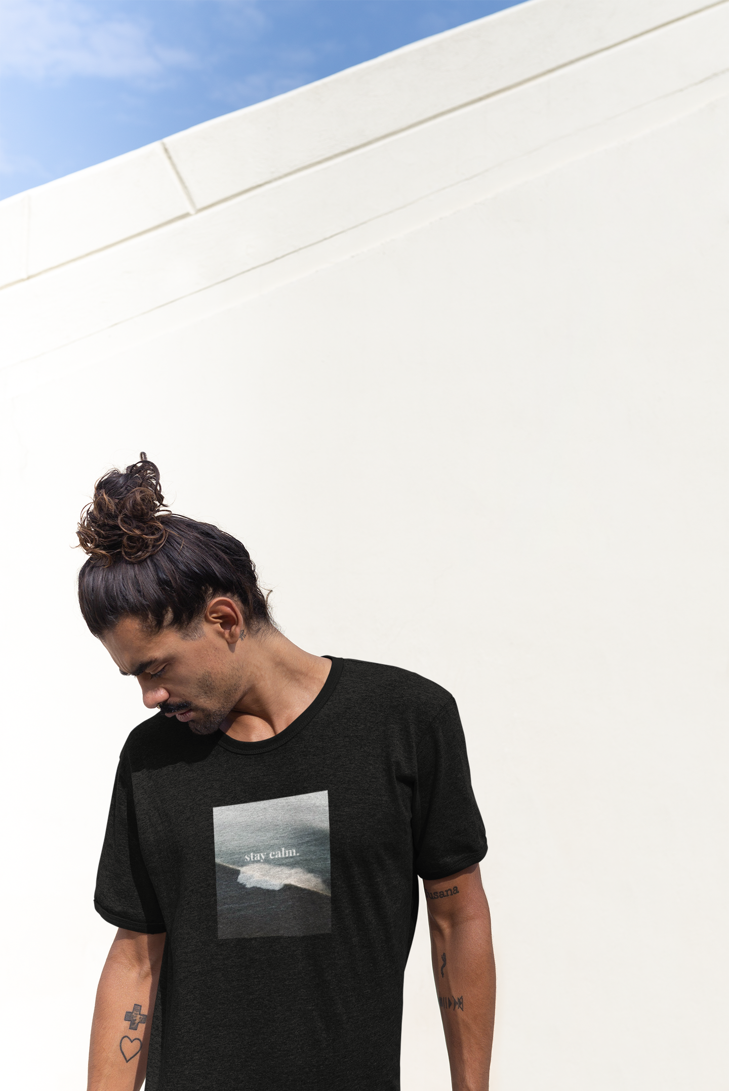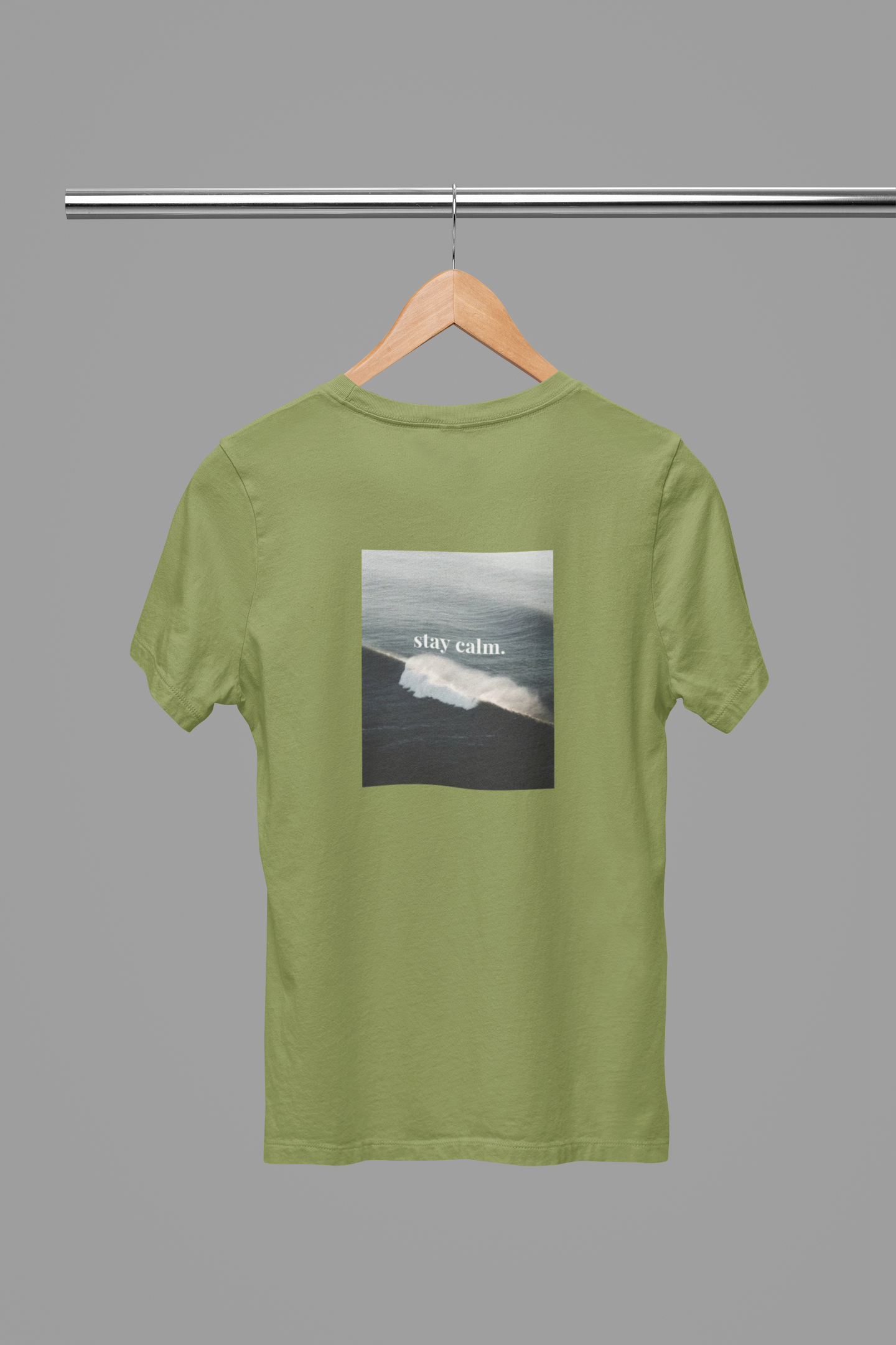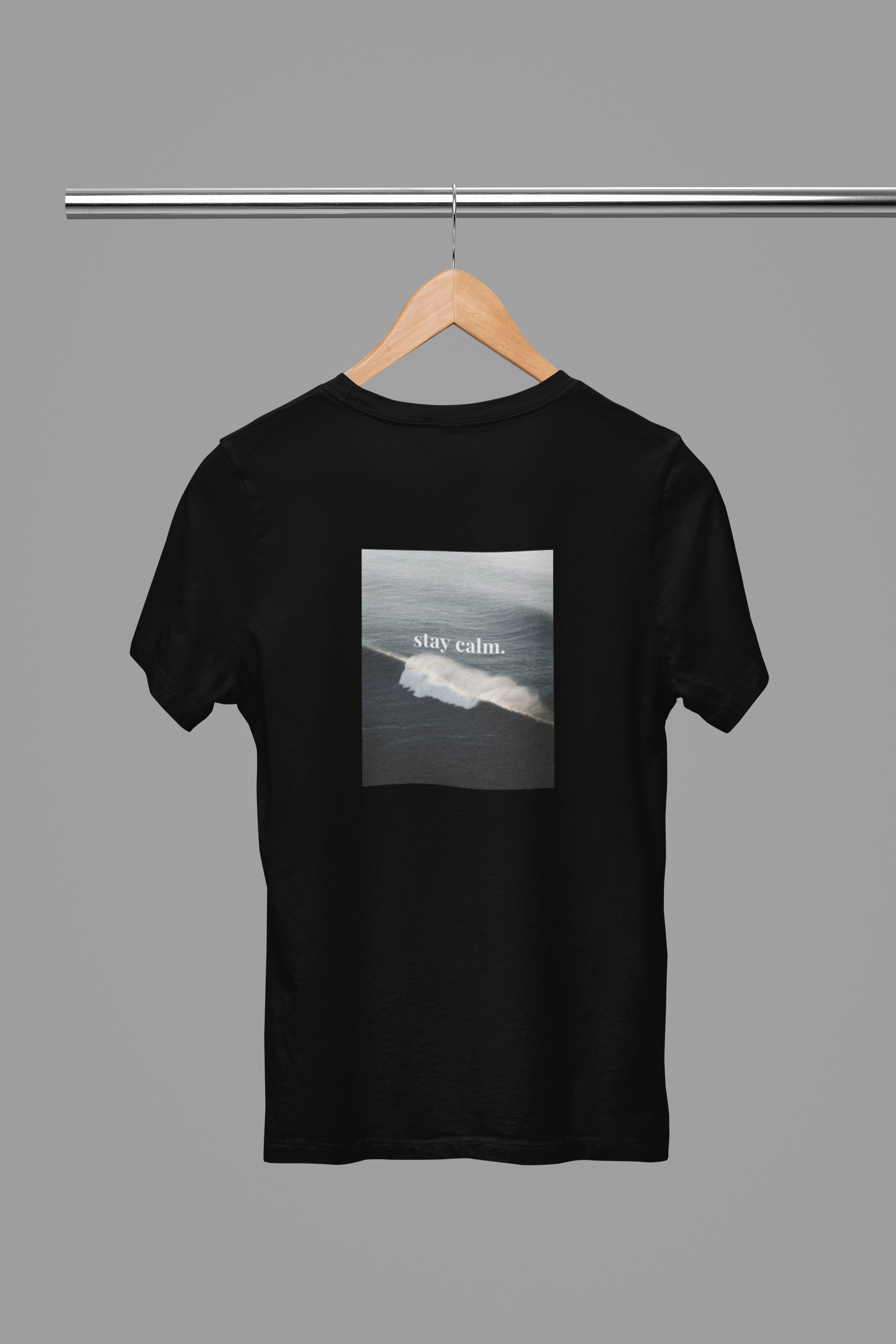 With the calming message “STAY CALM” printed boldly across the chest, this shirt blends mental clarity with effortless streetwear style. Its oversized fit adds a relaxed, flowy silhouette that’s both comfortable and trend-forward.