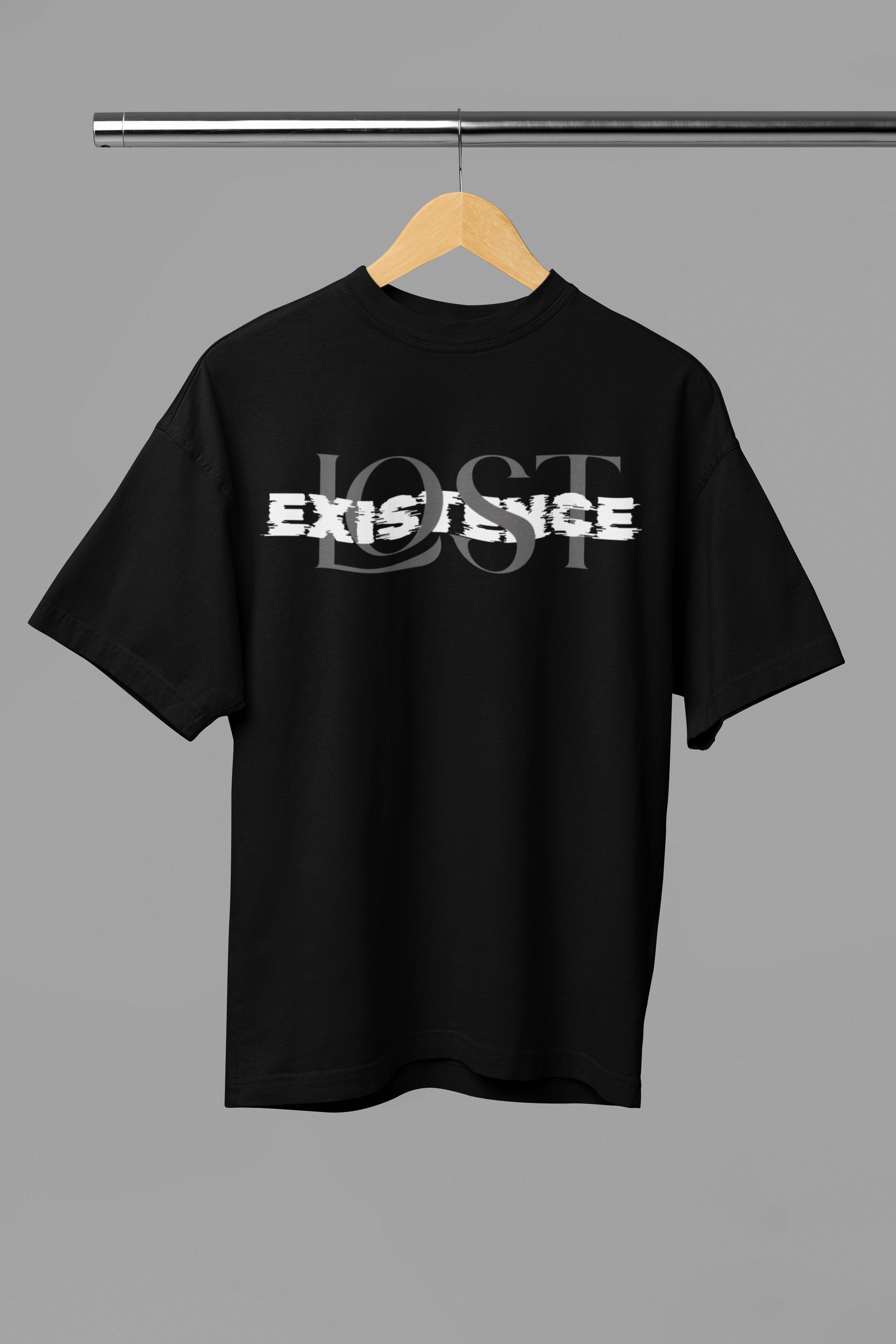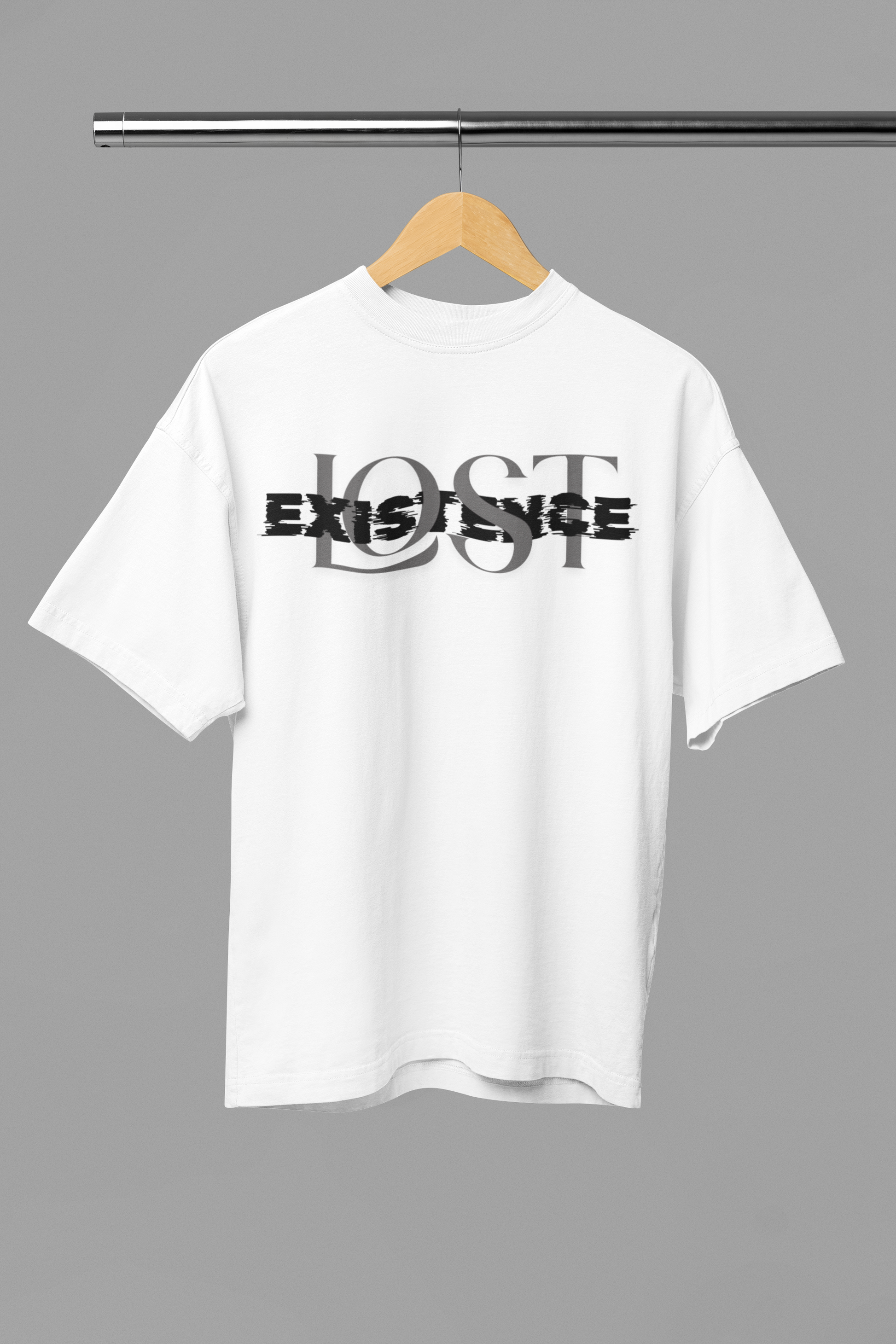 The design features the phrase “LOST EXISTENCE” in a bold, clean layout that grabs attention while sparking thought. It speaks to the wanderers, the seekers, and the quiet minds navigating a noisy world. Whether you interpret it as a commentary on modern identity or a poetic nod to being different, this shirt gives your style a voice without shouting.